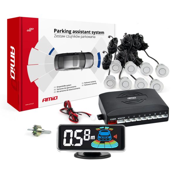 Peruutustutkasarja näytöllä/8 sensorilla