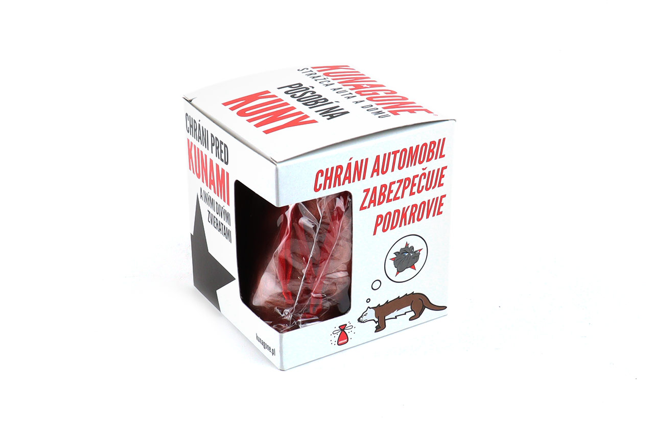 Patented Polish product, it repels all types of rodents so that they do not bite the car's electrical installation. It emanates the natural smell of a dog (its natural enemy) and repels not only martens but also other types of rodents. This product can also be used in attics and places where the presence of rodents is undesirable.